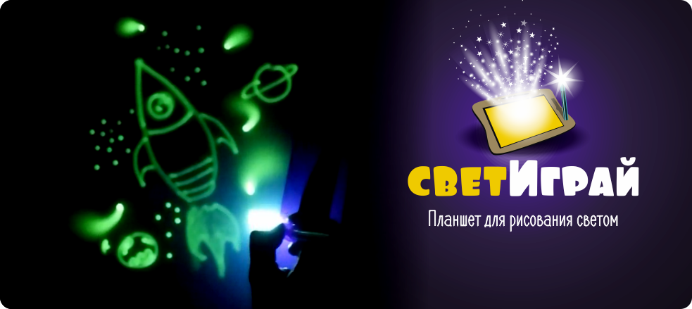 светИрай – это эко-планшет для рисования светом в темноте, удобной эргономичной формы, основу которого составляют экологически чистые материалы и световое перо. На планшете можно рисовать светом, оставлять послания на ночь своему ребёнку, или использовать его как ночник, не требующий электричества.